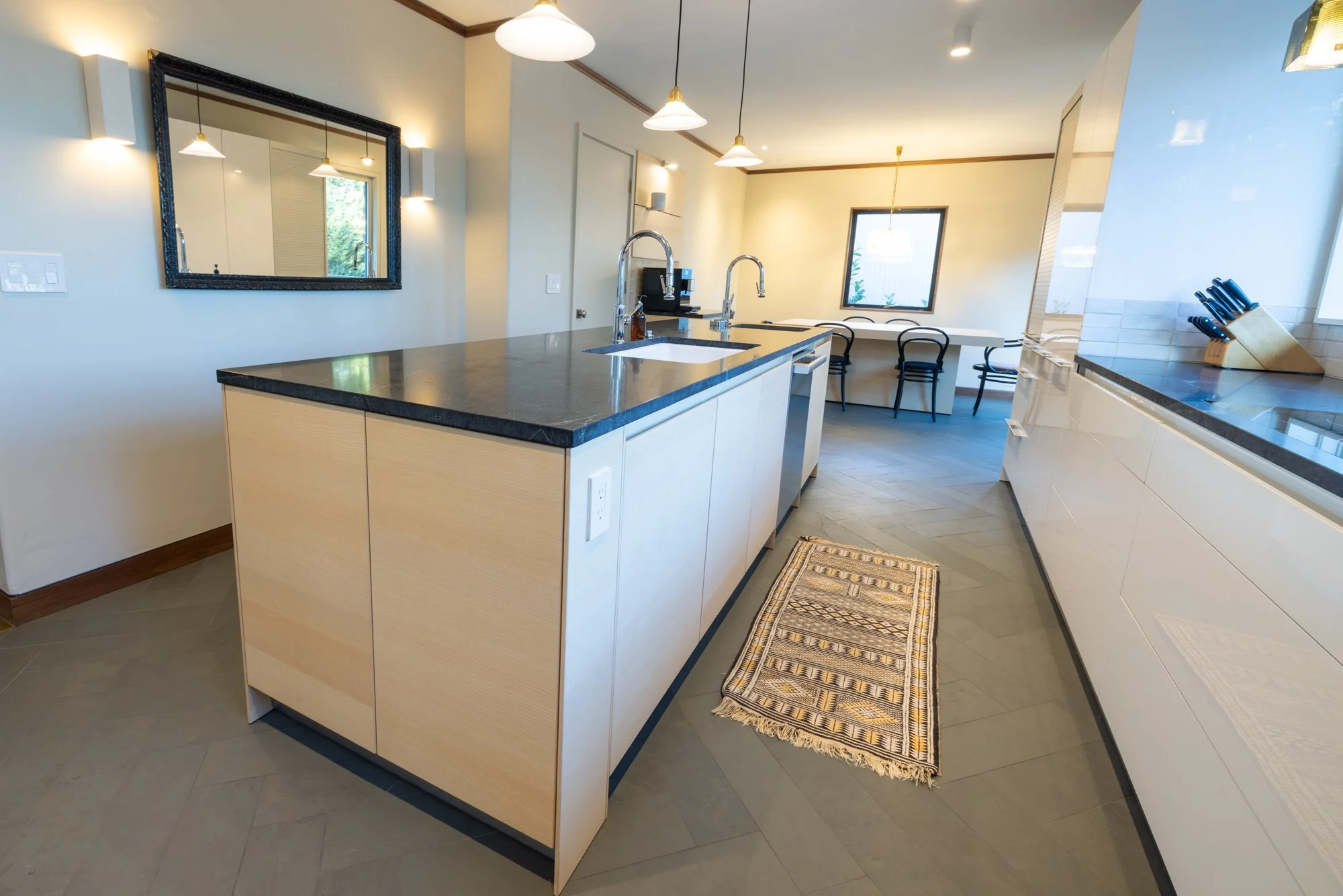 A modern kitchen update for 1931 home in Portland’s NW Hills. We removed a wall to open the space for a more functional kitchen and dining area. Lot’s of detail went into blending a modern aesthetic with the traditional feel of the original home.